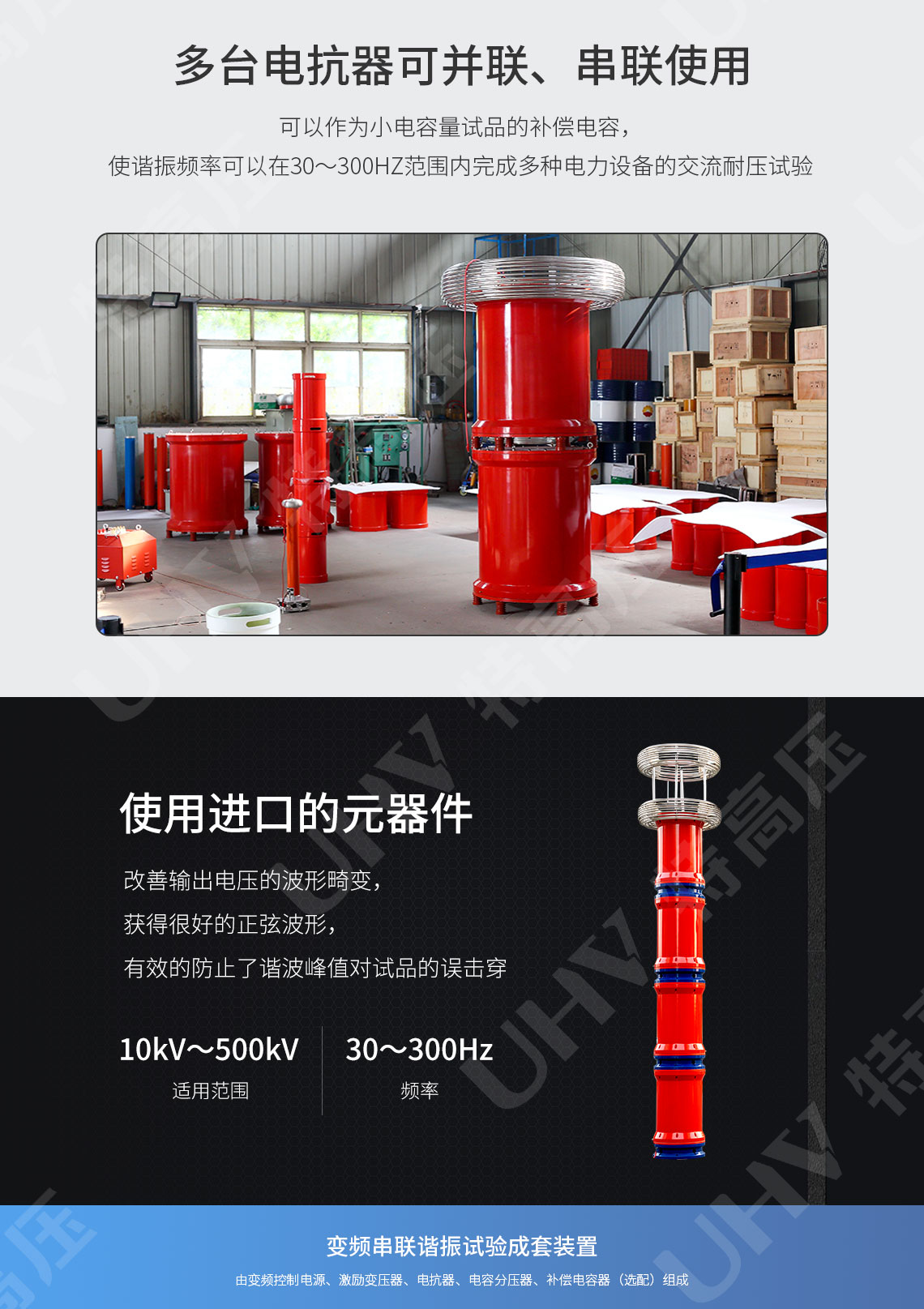 | 產(chǎn)品型號名稱 | 變頻源 | 諧振電抗器 | 激勵變壓器 | 分壓器 | 適用范圍 |